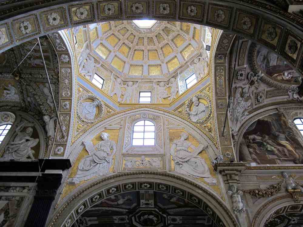 Con la ristrutturazione cinquecentesca l'interno, a tre navate, ha perso quasi completamente il carattere gotico originario, del quale restano solo i quattro archi ogivali alla base della cupola, sostenuti da due pilastri verso il presbiterio e due colonne verso le navate. La navata centrale è separata da quelle laterali da colonne. La cantoria, l'altare con trofei, i due pulpiti e le urne del presbiterio sono attribuiti a Silvio Cosini e Giovanni Angelo Montorsoli.
