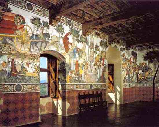 La sala baronale conserva il più importante ciclo pittorico conservato nel castello. Questo è infatti arricchito da un'importante sequenza di affreschi che ne decora perimetralmente le pareti, capolavoro e rara testimonianza della pittura profana tardogotica attuata nell'Italia settentrionale. L'opera è attribuita all'anonimo pittore Maestro del Castello della Manta.