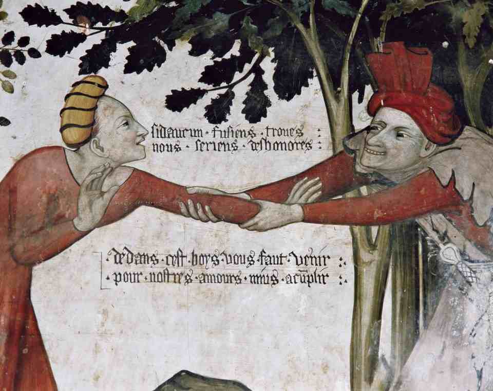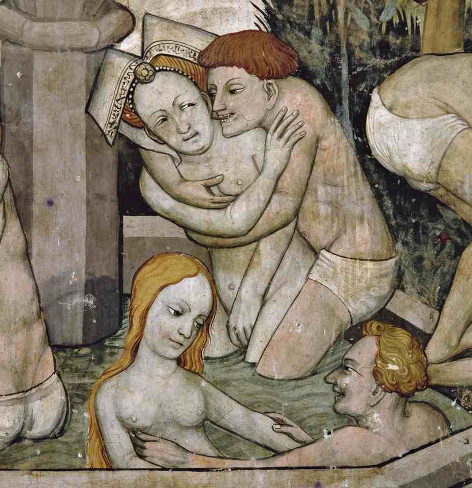 Il ciclo, completato poco dopo il 1420, rappresenta una serie di eroi ed eroine (presumibilmente i ritratti dei marchesi e marchese di Saluzzo), qui illustrati secondo la tradizione iconografica classica, ebraica e cristiana ed effigiati con preziosi abiti del tempo, e la cosiddetta Fontana di giovinezza, tema questo ripreso dall'antica tradizione dei romanzi francesi medievali. I suddetti personaggi sono ispirati ad un poema scritto da Tommaso III di Saluzzo, le Chevalier Errant e sono in ordine: Ettore, Alessandro Magno, Giulio Cesare, Giosuè, Davide, Giuda Maccabeo, Re Artù, Carlo Magno, Goffredo di Buglione, Delfile, Sinope, Ippolita, Semiramide, Etiope, Lampeto, Tamiri, Teuca, Pentesilea (tutti ancora ben visibili, tranne l'ultima eroina, rimasta mutilata dal crollo dell'intonaco).