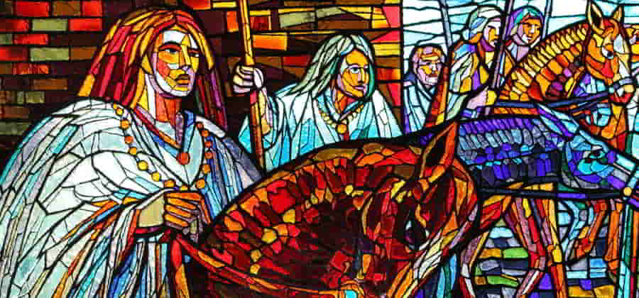 La grande opera vetraria musiva dedicata ai personaggi storici giussanesi è caratterizzata da quattro vetrate su disegno di Sassu e con la collaborazione dell’artista stesso, dal maestro vetraio Tito Toneguzzo di Monza. Tre vetrate sono dedicate ad altrettanti personaggi giussanesi: il matematico e fisico Gabrio Piola, la leggendaria figura di Alberto da Giussano, condottiero della Lega Lombarda contro le truppe del Barbarossa che Sassu ricorda ispirandosi alla poesia carducciana “Il Parlamento” e Fra Giovanni da Giussano, predicatore di Sant’Eustorgio ma anche uno degli architetti del Duomo di Milano. La quarta vetrata è invece dedicata alla storia dell'uomo dai primordi dell'umanità sino alla conquista dello spazio.