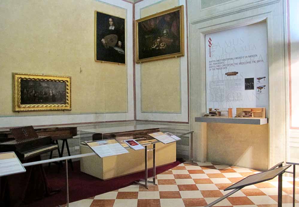 Numerose sono curiosità musicali, come il clavicembalo di Bartolomeo Cristofori, inventore del pianoforte, e il più antico pianoforte verticale conosciuto.