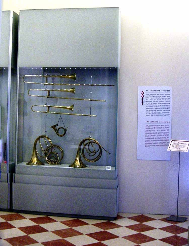 Sono esposti una cinquantina di strumenti musicali provenienti in larga parte dalle collezioni dei Medici e dei Lorena, formatesi in epoca Granducale (in particolare tra la seconda metà del secolo XVII e la prima metà del XIX secolo).
