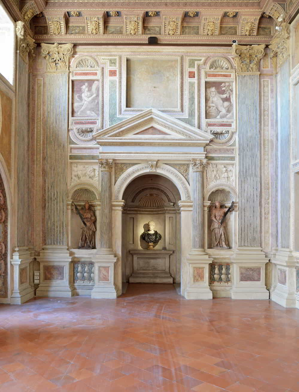 Ambienti distinti e separati tra loro furono costruiti in epoche diverse a partire dal XIII secolo, inizialmente per opera della famiglia Bonacolsi successivamente su impulso dei Gonzaga. Fu il duca Guglielmo ad incaricare il prefetto delle Fabbriche Giovan Battista Bertani perché collegasse i vari edifici in forma organica così da creare, a partire dal 1556, un unico grandioso complesso monumentale e architettonico, uno dei più vasti d'Europa (34.000 m² circa), che si estendeva tra la riva del lago Inferiore e Piazza Sordello, l'antica Piazza di San Pietro. Morto Bertani nel 1576, l'opera fu proseguita da Bernardino Facciotto che completò l'integrazione di giardini, piazze, loggiati, gallerie, esedre e cortili, fissando definitivamente l'aspetto della residenza ducale.