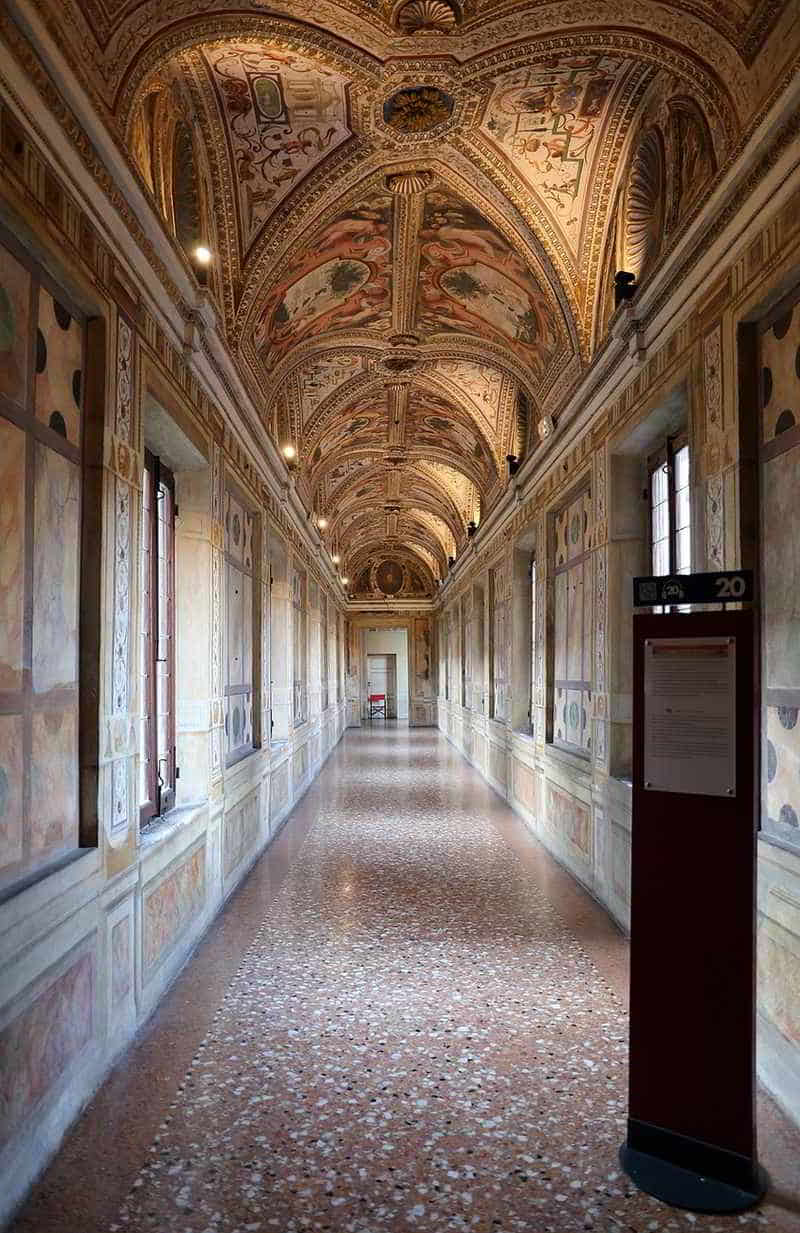 Antonio Pisano, detto il Pisanello, dipinse nel 1433 e nel 1437 nella sala che oggi porta il suo nome un maestoso ciclo di affreschi di soggetto cavalleresco arturiano, avente per soggetto la battaglia di Louverzep, che aveva lo scopo di glorificare il casato del committente Gianfrancesco Gonzaga, anch'egli raffigurato nel dipinto. Questi affreschi raccontano l'epopea di Re Artù le cui storie erano molto popolari all'epoca perché costituivano il paradigma del comportamento cavalleresco.