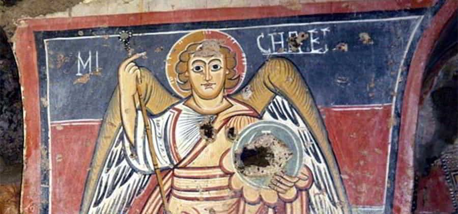 La grotta di San Biagio, nella sua parte esplorata, si estende per ventisette metri di lunghezza e circa tre metri di larghezza ed è suddivisa in tre parti: l'atrio, la navata con quattro nicchie su ogni lato e l'abside. Le pareti sono decorate con diversi strati di affreschi: in realtà sul lato sinistro sono presenti affreschi molto grandi lungo tutto la parete mentre su quello destro soltanto tre; la datazione delle decorazioni spazia dal IV-V secolo per le più antiche al X-XI secolo per quelle più recenti. Tra gli affreschi più importanti la Madonna in Trono, di autore ignoto, è stata dipinta tra il l'VIII e il X secolo, è di fattura bizantina e si tratta della più antica rappresentazione mariana nel territorio della diocesi sorrentino-stabiese: rappresenta una Madonna dall'aspetto rigido che porta tra le braccia Gesù nell'atto di benedire; l'arcangelo Michele, risalente al XII-XIII secolo, è raffigurato quasi a grandezza naturale, vestito da una tunica come un guerriero longobardo e regge tra le mani un globo e una lancia stilizzata; san Renato, risalente al XI secolo, raffigura il primo vescovo di Sorrento: ha testa calva, fronte alta ed è vestito con pallio vescovile e regge in mano il libro delle sacre scritture; un Cristo accompagnato dagli arcangeli Michele e Raffaele; san Giovanni e santa Brigida; i santi Pietro e Giovanni.