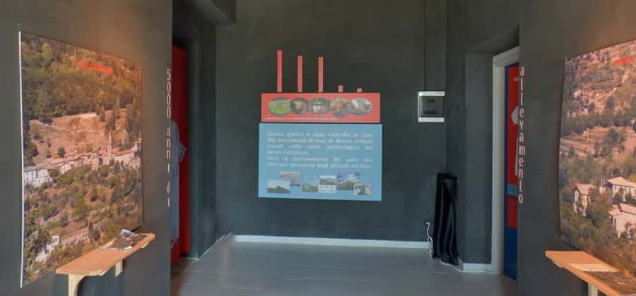 L’attuale allestimento della mostra è articolato su tre livelli: Il primo consiste in sole immagini (personaggi-guida e sfondi di ricostruzione storica d’ambiente), il secondo da pannelli in cui viene riportato un discorso diretto del personaggio-guida (in forma narrativa), il terzo da pannelli didascalici.