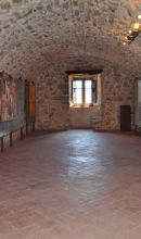 Il percorso parte dalla visita dei locali di più significativa valenza archeologica e dalla ricostruzione anche attraverso reperti e documenti della storia del Castello affiancata da un’esposizione della memoria storica dell’intero paese. Il primo piano è sede della Pinacoteca di arte moderna e contemporanea, il cui nucleo principale attualmente è costituito dal Fondo della donazione Dott. Luigi Di Piazza che comprende 35 opere, tra quadri e sculture, del periodo che va dal 1965 al 1993, tra cui presenti le opere di Bardi, Cagli, Carmassi, Schifano, Ortega.