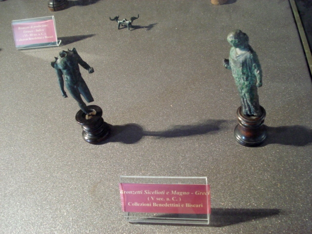 Notevoli i due portali rispettivamente del XIII e XV secolo. Quest'ultimo situato nel cortile è un importante documento del periodo in cui il Castello fu sede di prigione, con le scritte (firme, poesie, disegni) incise dai condannati sugli stipiti. Per finire una ricca collezione di crateri greci fra cui spicca un cratere attico con disegni di Perseo che decapita la Gorgone.