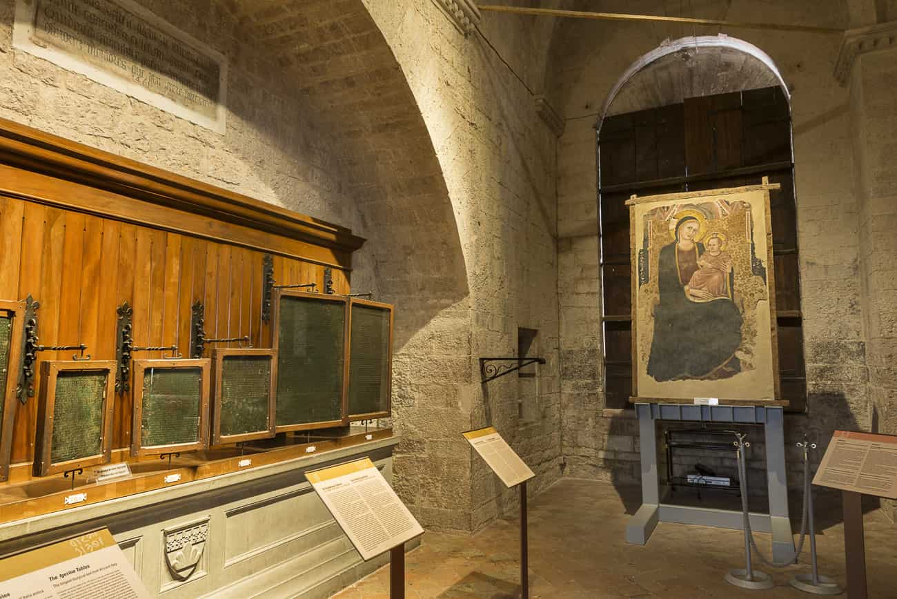 Degni di nota sono il Reliquiario miniato (XIV sec.), il Crocifisso ligneo di scuola giottesca opera del Maestro della Croce di Gubbio (inizio XIV sec.), il Gonfalone (inizio XVi sec.) realizato da Sinibaldo Ibi, artista seguace del Perugino e l'Immacolata Concezione di Francesco Signorelli (1527).