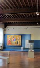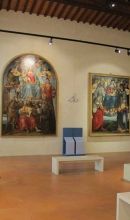Le sale al primo piano sono dedicate all'arte medievale e rinascimentale: sono esposti dipinti due-trecenteschi di Margaritone d'Arezzo, Dietisalvi di Speme, affreschi staccati di Spinello Aretino, la Madonna della Misericordia di Parri di Spinello e due pale di Bartolomeo della Gatta. Nel corridoio è collocato il Convito per le nozze di Ester e Assuero di Giorgio Vasari, uno tra i più grandi dipinti su tavola del Cinquecento italiano, realizzato per il refettorio della Badia delle Sante Flora e Lucilla.