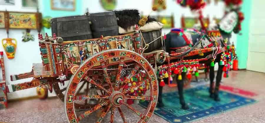 Il Museo comprende, oltre ai meravigliosi Carretti Siciliani, carrozze e calessi, una notevole quantità di opere (oltre 300 pezzi) tra sponde, casci i fusu, ruote, ornamenti dei cavalli, pennacchi, giare e tanto altro, tutto facente parte del tradizionale folklore siciliano e del mondo (ormai scomparso) del Carretto Siciliano e dei sui Carrettieri.