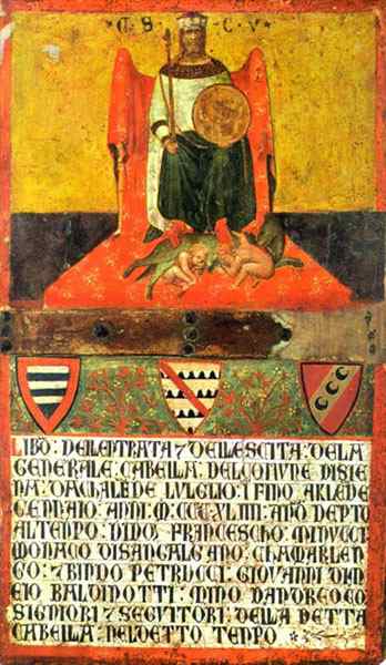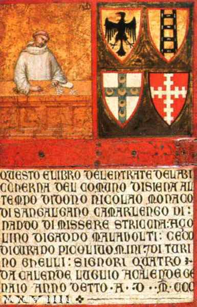 Le biccherne più antiche raffigurano semplicemente il camarlengo al lavoro o gli stemmi dei provveditori, ma col tempo diventarono sempre più elaborate e vennero commissionate a famosi artisti come Ambrogio Lorenzetti, Simone Martini, Domenico Beccafumi e molti altri che oggi riempiono la Pinacoteca Nazionale di Siena.