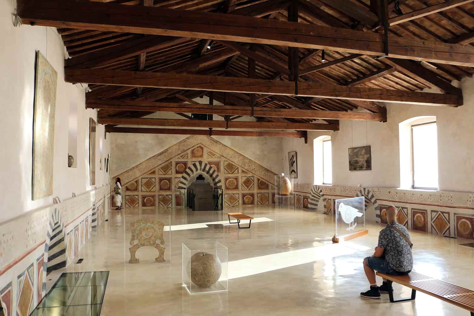 Nel lato contiguo del porticato è in allestimento una rarissima serie di recipienti ceramici da tavola e da cucina, del primo Trecento, che erano stati usati come riempimento leggero delle volte del coro di San Domenico.