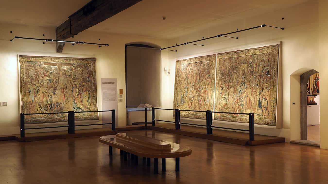 Già a partire dal XII secolo la storia della cattedrale di Trento è rispecchiata dal suo tesoro che è giunto fino a noi particolarmente ricco non solo per l'alta qualità e pregnanza di molti oggetti, ma anche per la loro variata quantità. L'esposizione segue un percorso cronologico, dal Medioevo all'Ottocento, che presenta come suo momento centrale l'urna processionale di San Vigilio ed esemplifica con pezzi diversi per forma, funzione e stile i molteplici orientamenti dell'arte orafa e i rapporti privilegiati che gli ecclesiastici trentini intrattennero con argentieri attivi Oltralpe, in centri molto rinomati quali Norimberga e Augusta. Una custodia a parte è stata riservata ai reliquiari. Chiude la sezione una teca-mensa d'altare dove sono disposti i diversi vasi sacri necessari alla celebrazione della Messa. A fianco di questa sezione è esposta una delle più cospicue donazioni pervenuteci: quella di Giorgio di Liechtenstein (1390-1419), nobile boemo che, dopo essere stato preposito del Duomo a Vienna, divenne vescovo di Trento nel 1390. La straordinaria croce di Flavon e i raffinatissimi ricami per casula e tonacelle con Storie di San Vigilio sono documenti esemplari e di qualità davvero molto alta di quel Gotico internazionale che dalla metà del Trecento si diffuse in tutta Europa.