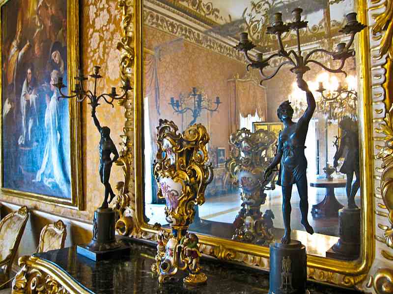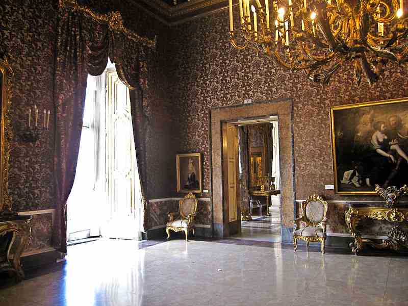Il palazzo monumentale è visitabile ed ammirabile sia come edificio storico, ospitando oggetti, arredi, arazzi, ed ambienti risalenti al periodo spagnolo e borbonico, che come galleria, avendo importanti tele, tra le quali alcune di Luca Giordano, Andrea Vaccaro, Mattia Preti, Bartolomeo Schedoni, del Guercino, nonché affreschi del Corenzio e di Massimo Stanzione. Nell'ala ovest del palazzo vi è la biblioteca nazionale Vittorio Emanuele III; sul lato posteriore, invece, vi sono collocate le sculture dei Palafrenieri.