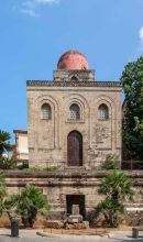 La piccola chiesa di San Cataldo sorge accanto alla Martorana su un terrazzo che la pone in posizione dominante. Poche sono le notizie storiche: l'edificio fu sicuramente di proprietà di Majone da Bari, Ammiraglio e Cancelliere del re Guglielmo I, tra il 1154 ed il 1160 ma non si sa se ne fu anche il costruttore. Scomparsi gli adiacenti edifici che costituivano il palazzo signorile, la chiesa conserva intatte le sue forme.
