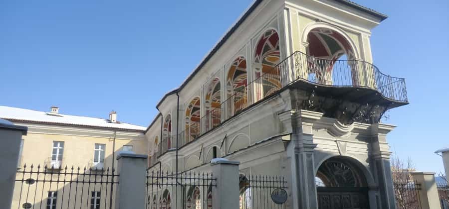 Il Palazzo Sarriod de La Tour è posto in collegamento con la via principale attraverso una lunga galleria di ponente che termina con un ampio portone. L'attuale impianto è il risultato di una lunga serie di interventi che hanno non poco modificato quella che doveva essere una semplice casa a torre. L'intervento settecentesco più significativo lo si deve al Conte Tommaso Alberto Saluzzo che nel 1734 acquistò la signoria sul paese di Costigliole.