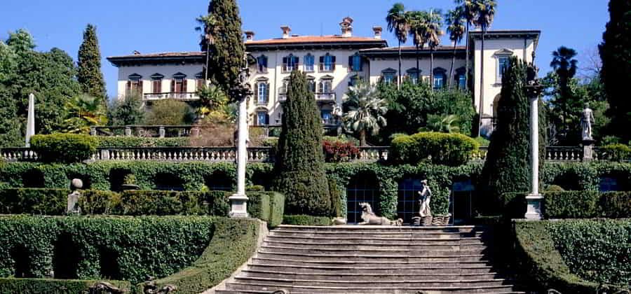Immersi negli otto ettari di parco ci sono: lo studio d'arte del 1896, le scuderie, la portineria e la cappella di famiglia, costruita sulla scogliera nel 1898, successivamente venduta, ora ospita una dimora privata. Il parco è costituito da giardini a stanze e terrazzamenti, in vari stili, italiano, inglese, medievale e frutteto. Vari stretti passaggi immettono in giardini a tema: delle Ore, della Letizia, della felicità, della Mestizia, delle Memorie ed infine in quello dei Sospiri, che ha al centro l'esedra a mosaico con sette nicchie ornate da statue di divinità mitologiche.