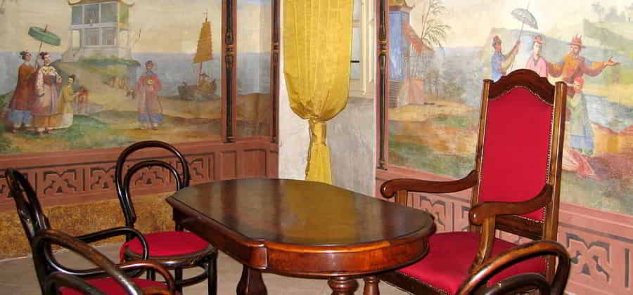 Gli interni ricchi di affreschi, in parte dovuti all'acquese Antonio Ivaldi detto il Muto, hanno l'espressione forse migliore nella stanza detta "cinese" per le singolari scene di ambiente orientale.