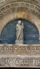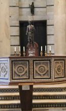 Il pulpito fu scolpito fra il 1255 e il 1260 da Nicola Pisano con scene della Vita di Cristo, sui cinque pannelli parapetto, mentre in corrispondenza delle colonne sono rappresentati altri soggetti che simboleggiano Le Virtù. Le scene sul pulpito e specialmente la figura dell'Ercole nudo mostrano bene come l'influsso classico rendesse Nicola una precursore del rinascimento.