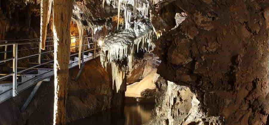 L'antro si snoda in due tronconi principali, su diversi livelli, originati da due corsi d'acqua sotterranei: il fiume Placido a sinistra e il fiume Rapido a destra. La lunghezza totale è di 8 chilometri ed il punto più alto è di 153 m. La parte visitabile è composta da numerose sale abbellite con concrezioni, stalattiti e stalagmiti (la più alta misura 11 metri), colonne che si innalzano fino a 15 m, cristalli di aragonite, laghi sotterranei.