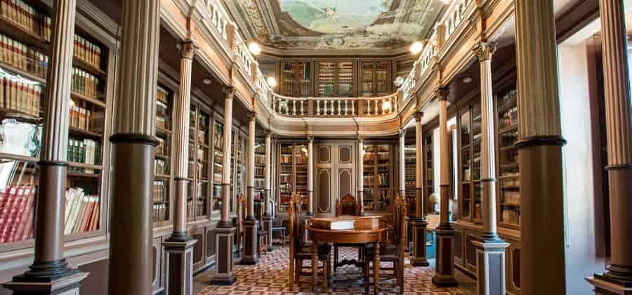 Migliaia di volumi conservati in apposite scaffalature lignee rendono lo spazio della biblioteca elegante e raffinato. Il luogo è anche un museo che custodisce una preziosa collezione zoologica.
