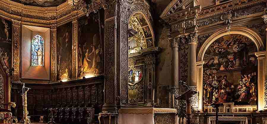 L'interno è a croce latina con tre navate divise da colonne di alabastro nero con basamenti e capitelli riccamente ornati. La seconda a destra e la seconda a sinistra, in particolare, sono autentici capolavori di Gian Domenico Gagini.