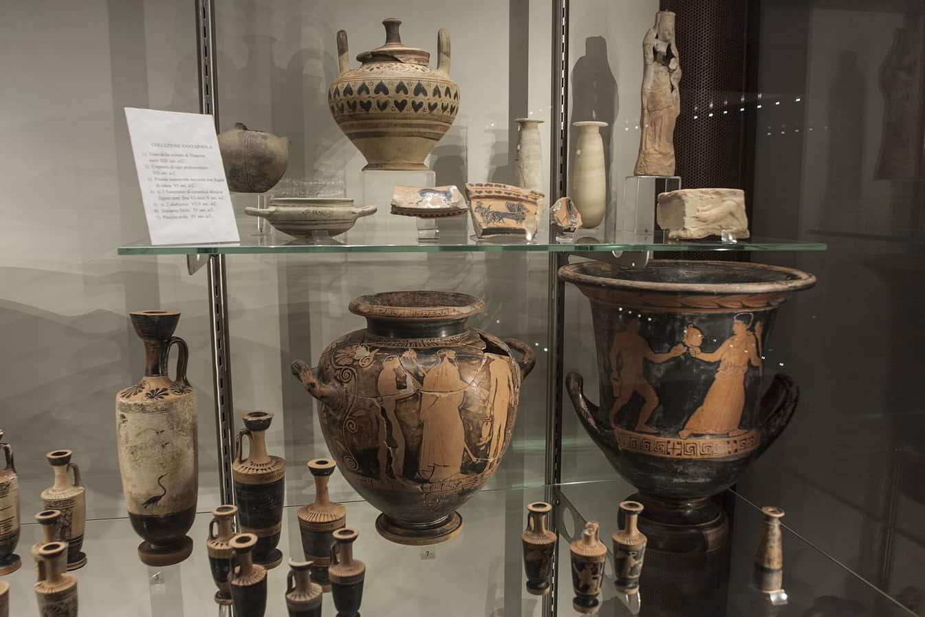 Il primo nucleo proviene dall'antico Museo Civico, integralmente confluito nell'attuale museo, ed è costituito da un complesso di materiali di varia origine, per lo più di incerta contestualizzazione. Una gran parte proviene dagli scavi effettuati negli anni Cinquanta nella valle S. Mauro, in corrispondenza della porta urbica meridionale e di una delle necropoli e sul colle della Metapiccola, nell'ambito dell'insediamento indigeno dell'età del Ferro; l'ultima parte, infine, è relativa alle indagini ed alle scoperte effettuate, negli anni più recenti dalla Soprintendenza ai Beni Culturali di Siracusa nel territorio e nel sito urbano della città odierna.