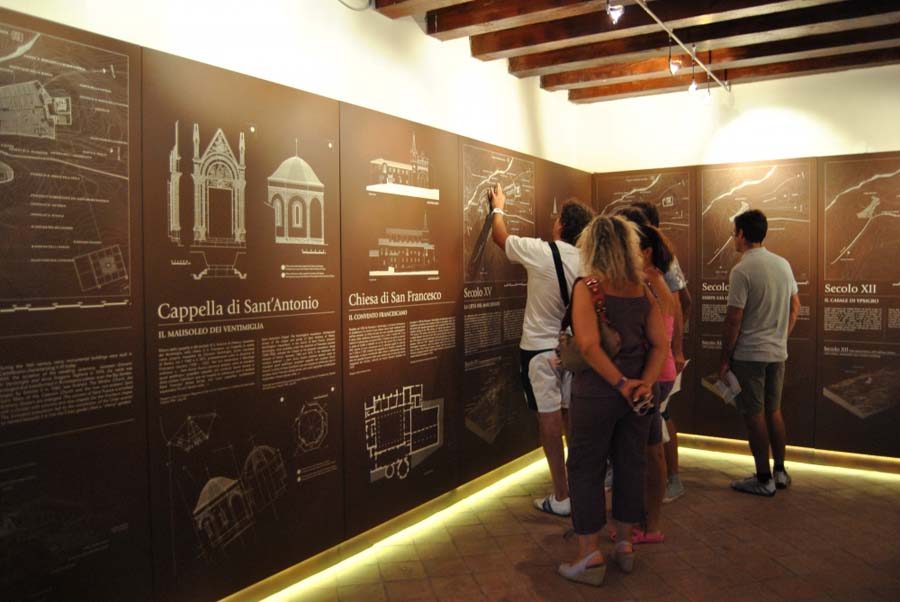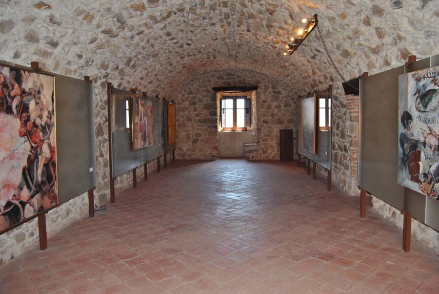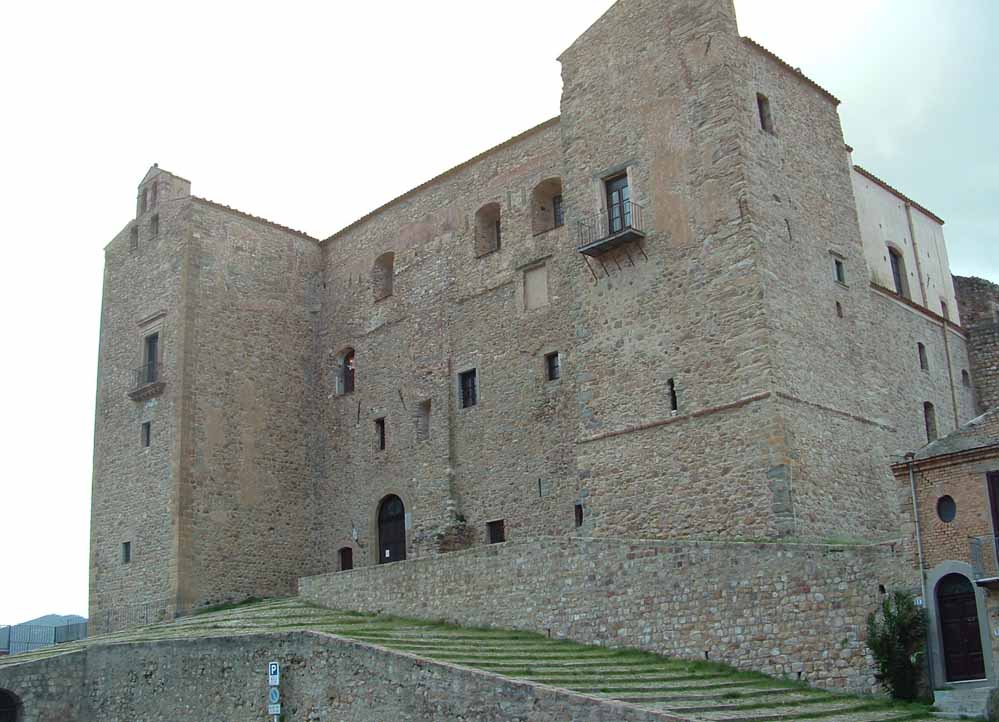 Il percorso parte dalla visita dei locali di più significativa valenza archeologica e dalla ricostruzione anche attraverso reperti e documenti della storia del Castello affiancata da un’esposizione della memoria storica dell’intero paese. Il primo piano è sede della Pinacoteca di arte moderna e contemporanea, il cui nucleo principale attualmente è costituito dal Fondo della donazione Dott. Luigi Di Piazza che comprende 35 opere, tra quadri e sculture, del periodo che va dal 1965 al 1993, tra cui presenti le opere di Bardi, Cagli, Carmassi, Schifano, Ortega.