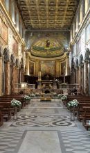 Dedicata a san Marco evangelista, fu costruita nel 336 da papa Marco e ricostruita nell'833 da papa Gregorio IV; la basilica mostra la decorazione barocca dovuta ai restauri del XVII e XVIII secolo. La facciata della chiesa costituita da una loggia per le benedizioni simile a quelle che avevano anche San Pietro e San Paolo, fu costruita nel 1466: è tradizionalmente attribuita a Leon Battista Alberti, anche se la storiografia recente generalmente accetta l'attribuzione al suo seguace Francesco del Borgo La loggia venne costruita e decorata con marmi sottratti al Colosseo e al Teatro di Marcello e a queste costruzioni si conforma.