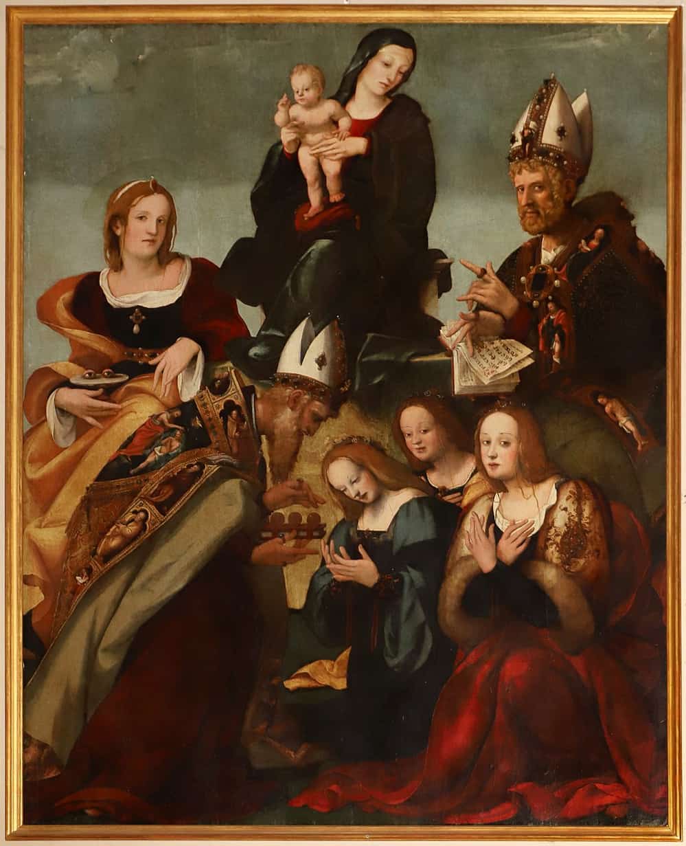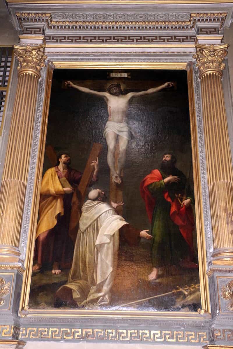 L'abside è decorata da una Madonna col Bambino, santi e il committente Matteo Malvezzi di Girolamo Siciolante da Sermoneta (1548), all'interno di una maestosa cornice del Formigine (1554). Qui si trova l'organo antico costruito da Giovanni Cipri nel 1556.
