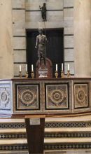 Il pulpito fu scolpito fra il 1255 e il 1260 da Nicola Pisano con scene della Vita di Cristo, sui cinque pannelli parapetto, mentre in corrispondenza delle colonne sono rappresentati altri soggetti che simboleggiano Le Virtù. Le scene sul pulpito e specialmente la figura dell'Ercole nudo mostrano bene come l'influsso classico rendesse Nicola una precursore del rinascimento.