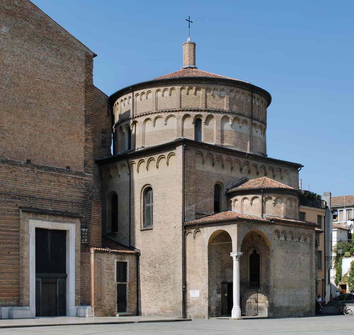 La costruzione dell'edificio principiò nel XII secolo su probabili preesistenze; subì vari rimaneggiamenti nel secolo successivo, e venne consacrato dal Guido, patriarca di Grado (1281). Negli anni '70 del XIV secolo fu restaurato e adattato a mausoleo del Principe della città Francesco il Vecchio da Carrara e della moglie Fina Buzzaccarini che ne curò la decorazione affidando il lavoro a Giusto de' Menabuoi (che trovò in seguito sepoltura all'esterno dell'edificio). Con la caduta della signoria carrarese, nel 1405, i soldati veneziani demolirono le monumentali sepolture e coprirono con pittura verde i numerosi emblemi di Francesco il Vecchio. Restaurato a più riprese nel Novecento, attende ora un importante restauro complessivo.