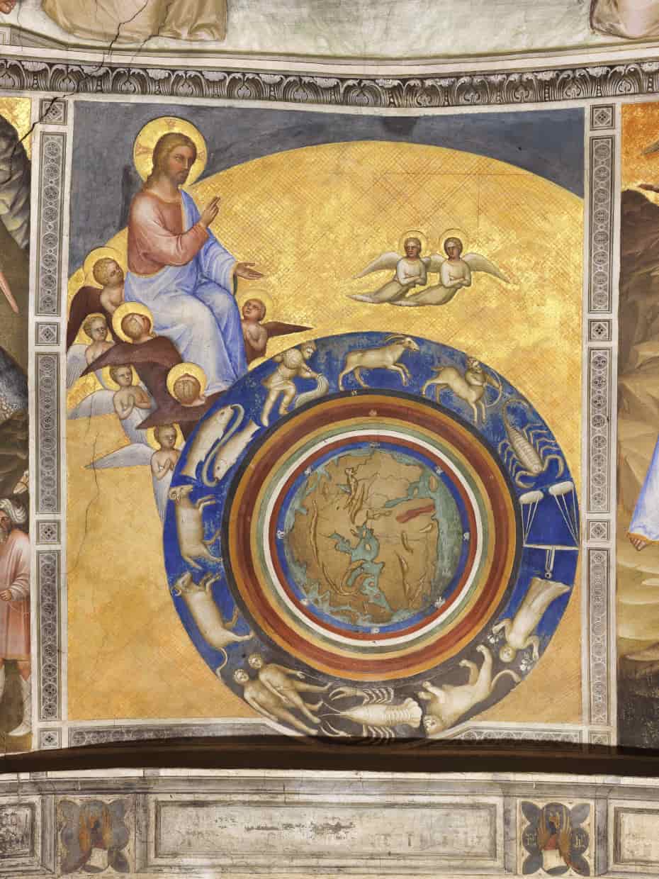 Nella scena della Creazione del mondo lo zodiaco esprime la funzione di Cristo come signore del tempo cosmico. Dio Padre può interrompere il corso degli eventi naturali per manifestare all'uomo il proprio volere: ciò avvenne, per esempio, durante le tre ore di eclissi solare che accompagnarono l'agonia e la morte di Gesù. Attraverso gli angeli, qui rappresentati, Dio domina e neutralizza l'influsso degli antichi demoni planetari sul mondo sublunare.