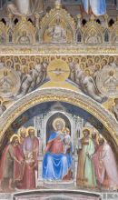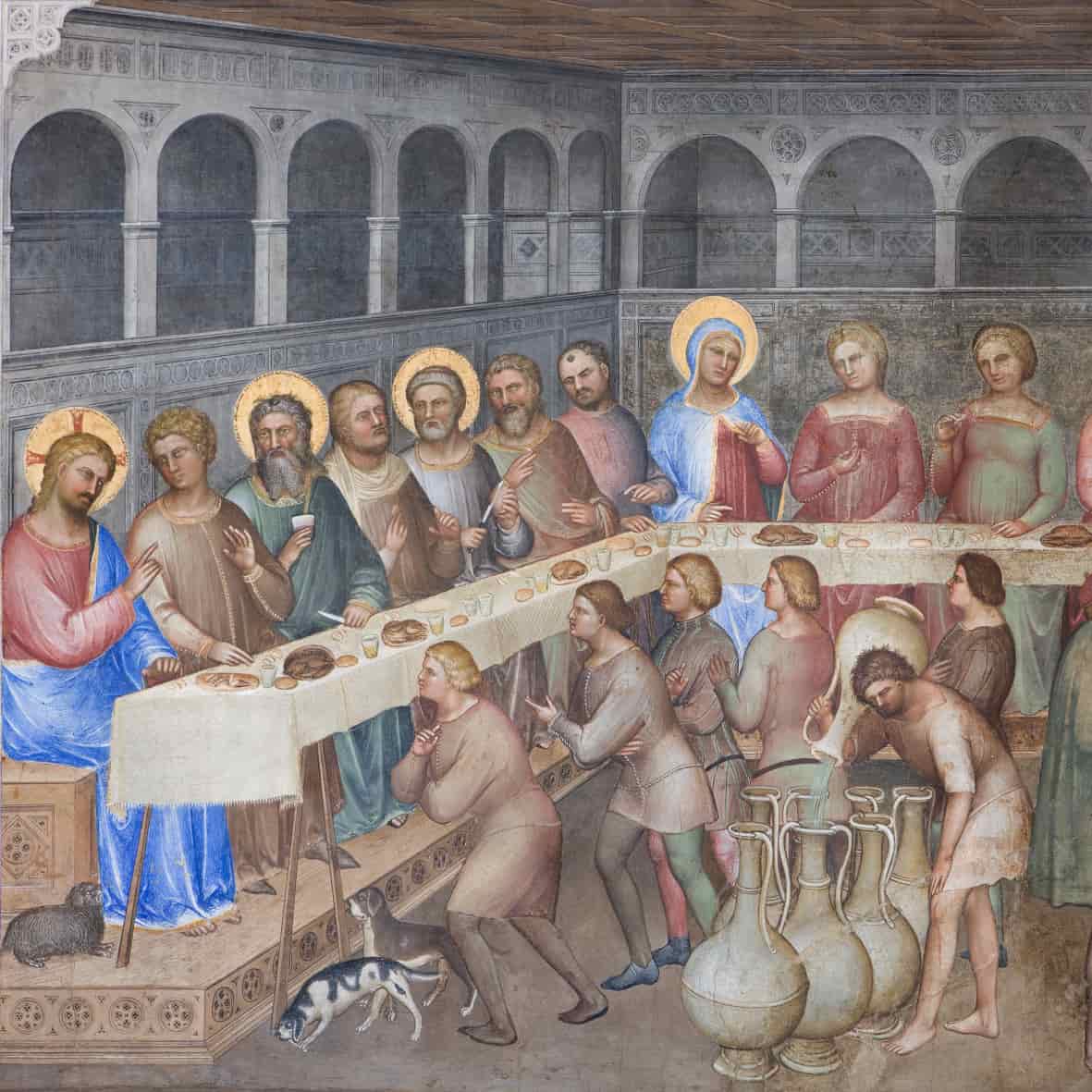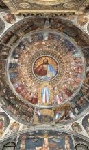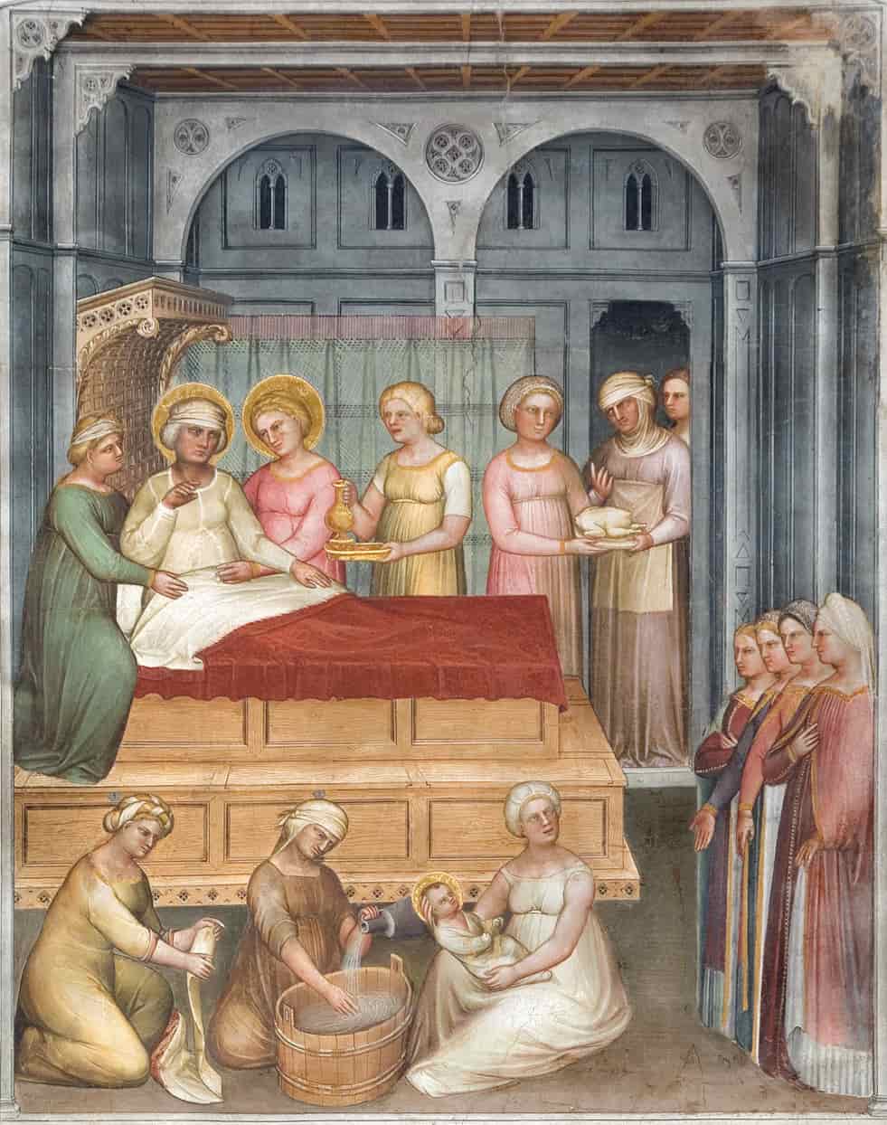 Nel tamburo dipinse invece Storie della Genesi, sui pennacchi i Profeti ed Evangelisti, dove già dimostrò un estro meno bizantino, come le figure inserite entro veridiche stanze illusionisticamente dipinte. Anche nelle Storie di Cristo e del Battista, sulle pareti, compaiono delle architetture finemente calcolate, dove il pittore inserì le sue solenni e statiche immagini. Più libera appare invece la raffigurazione negli episodi di contorno, come nelle Nozze di Cana, dove una schiera di servitori si muove con naturalezza nella stanza, a differenza degli statici commensali. Dall'analisi di queste scelte stilistiche si evince come l'uso o meno di effetti retrò fosse per Giusto una precisa componente volutamente cercata per fini espressivi e simbolici: è forse l'unico pittore del Trecento che ha la consapevolezza per scegliere via via quale linguaggio adoperare.