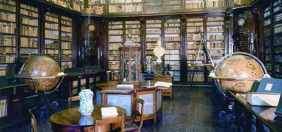 Arredata con armadi progettati dall’architetto Tommaso Mattei, presenta sulla volta della Sala di lettura un superbo affresco del XVIII secolo attribuito a Gregorio Guglielmi e conserva due globi del XVII secolo di Vincenzo Coronelli.