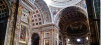 Nei pennacchi si trovano i quattro evangelisti affacciati su balconcini illusionisticamente proiettati verso lo spettatore, ciascuno col suo simbolo totemico del tetramorfo. Negli angoli si trovano finti bassorilievi con elementi vegetali all'antica, che richiamano la passione antiquaria del Mantegna, uniti da una finta decorazione marmorea che simula lo spessore della cornice della cupola. Ovunque, nella cupola come nei pennacchi, ricorre il tema dell'agrumeto, che fa da sfondo anche alla tela della Sacra Famiglia e famiglia del Battista e del Battesimo, presenti in cappella, e che fu spesso usato dal Mantegna nella sua tarda attività. Se la cupola è talvolta attribuita ai figli di Mantegna, gli evangelisti dovrebbero essere di mano del Correggio.