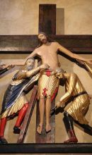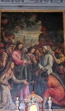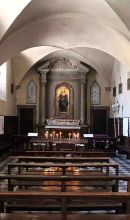 La cattedrale di Santa Maria Assunta è il luogo di culto cattolico principale di Volterra. L'interno, pur conservando nella struttura e nell'impianto la forma basilicale a croce latina a tre navate, offre un aspetto tardo-rinascimentale. Lo spazio è diviso da ventidue colonne rivestite di stucco simulante granito rosa, intervento eseguito nell'ambito del restauro del 1842-1843, mentre i capitelli in stucco bianco realizzati nel Cinquecento e messi a oro sono di Leonardo Ricciarelli. Anche le pareti dipinte a bande bianche e grigie, il presbiterio e il pavimento sono frutto del restauro ottocentesco.