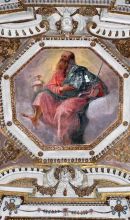 La navata mediana e il transetto sono coperti da un grandioso soffitto a cassettoni, meraviglioso insieme di elementi geometrici, decorativi, floreali, di figure di santi, di due grandi ovali dell'Assunta e dello Spirito Santo, progettato da Francesco Capriani, intagliato da Jacopo Paolini, e messo a oro da Fulvio Tucci fra il 1580 e il 1584. Sulla linea delle navate si aprono sei cappelle, che accolgono opere di pittori del secondo Cinquecento.