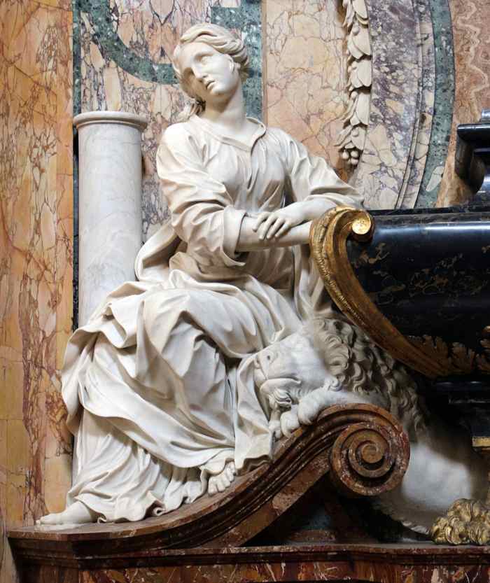 Sopra l'altare della cappella Paluzzi Albertoni (che si apre nella parete di fondo del transetto sinistro), vi è la Beata Ludovica Albertoni, scolpita da Gian Lorenzo Bernini per il cardinale Paluzzi (nipote di papa Clemente X) tra il 1671 e il 1675. La statua, vero esempio di trasporto mistico-carnale e di estasi barocca, è collocata su uno spettacolare drappo in diaspro sopra la mensa dell'altare della cappella; la parete di fondo, sempre secondo i suggerimenti di Gian Lorenzo Bernini, è stata scenograficamente arretrata per permettere alla luce di penetrare nell'ambiente da due finestre laterali nascoste, creando un effetto quasi soprannaturale, proprio come nell'Estasi di Santa Teresa della chiesa di Santa Maria della Vittoria. La pala della cappella, inquadrata da teste di cherubini in stucco che ribadiscono il sentore di apparizione mistica che pervade tutto il sacello, è del Baciccio e raffigura la Madonna col Bambino e Sant'Anna (1675 circa).