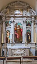 All'interno della chiesa si possono trovare opere di grande rilievo. Il Trittico della Misericordia del pittore muranese Bartolomeo Vivarini è del 1473 è collocato nella prima cappella di destra. Ed è considerato uno dei migliori presenti nella struttura. Il Trittico prevede la Vergine della Misericordia, L'incontro di Gioacchino ed Anna, la Nascita della Vergine, tecnica della tempera all'uovo. I dipinti Santa Barbara e quattro santi, Vincenzo Ferreri, Sebastiano e Antonio Abate sono opere di Jacopo Negretti detto Palma il Vecchio 1523. Di Jacopo Palma il Giovane Madonna in pietà e San Francesco D'Assisi del 1604. Vi si conservano dipinti della scuola di Giovanni Bellini