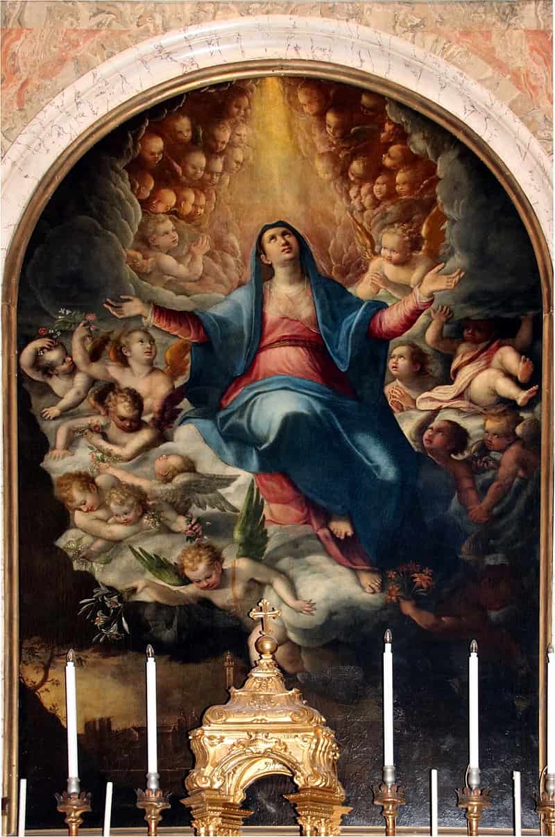 Opere di pregio conservate all'interno della pieve sono il crocifisso miracoloso, di fattura medievale, una pala seicentesca di Guido Reni con l'Assunzione della Beata Vergine Maria, la tela del 1646 del Guercino proveniente dalla soppressa chiesa dei Padri Scolopi con soggetto l'Annunciazione e quella della Nascita della Vergine, realizzata nel 1605 da Ippolito Scarsella, un quadro raffigurante Santa Maria Maddalena con Gesù Risorto eseguita tra il 1665 ed il 1675 da Cesare Gennari, la pala con San Giuseppe Calasanzio riceve la visione della Vergine, dipinta nel 1749 da bolognese Giuseppe Varotti, quella con San Giuseppe assieme al Bambino appare ai Santi Antonio di Padova e Francesco di Paola, opera di ignoto bolognese del XVIII secolo, il quadro della Crocifissione di Gesù con, vicino, la Beata Vergine Maria e i Santi Ignazio, Francesco e Giovanni Apostolo ed Evangelista, realizzato da Bartolomeo Gennari nel 1637, la tela raffigurante la Nascita di San Giovanni, eseguita tra il 1552 ed il 1577 da Orazio Samacchini, la pala del Ritrovamento della Vera Croce, dipinta da Bartolomeo Passarotti tra il 1585 ed il 1589, e il quadro con l'Assunzione di Maria, opera di Lavinia Fontana.