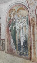 Sono evidenti nel corredo pittorico almeno tre ascendenze culturali: l’una legata all’ecumene bizantina (Deesis nel suo schema originale, ovvero Cristo benedicente al centro con alla destra la Vergine e alla sinistra San Giovanni Battista; Santa Parasceve; Santa Pelagia; il Santo anonimo con libro; le due Vergini con Bambino); l’altra alla tradizione crociata che vede il diffondersi del culto dei Santi cari ai guerrieri ed ai pellegrini (San Michele Arcangelo; San Giorgio; San Giuliano; San Leonardo di Limoges; il probabile San Teodoro); la terza all’ambito devozionale più prettamente locale (San Nicola, Santa Lucia, la Parabola delle Vergini).