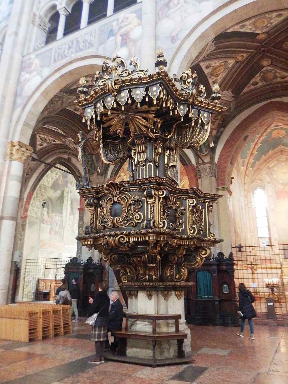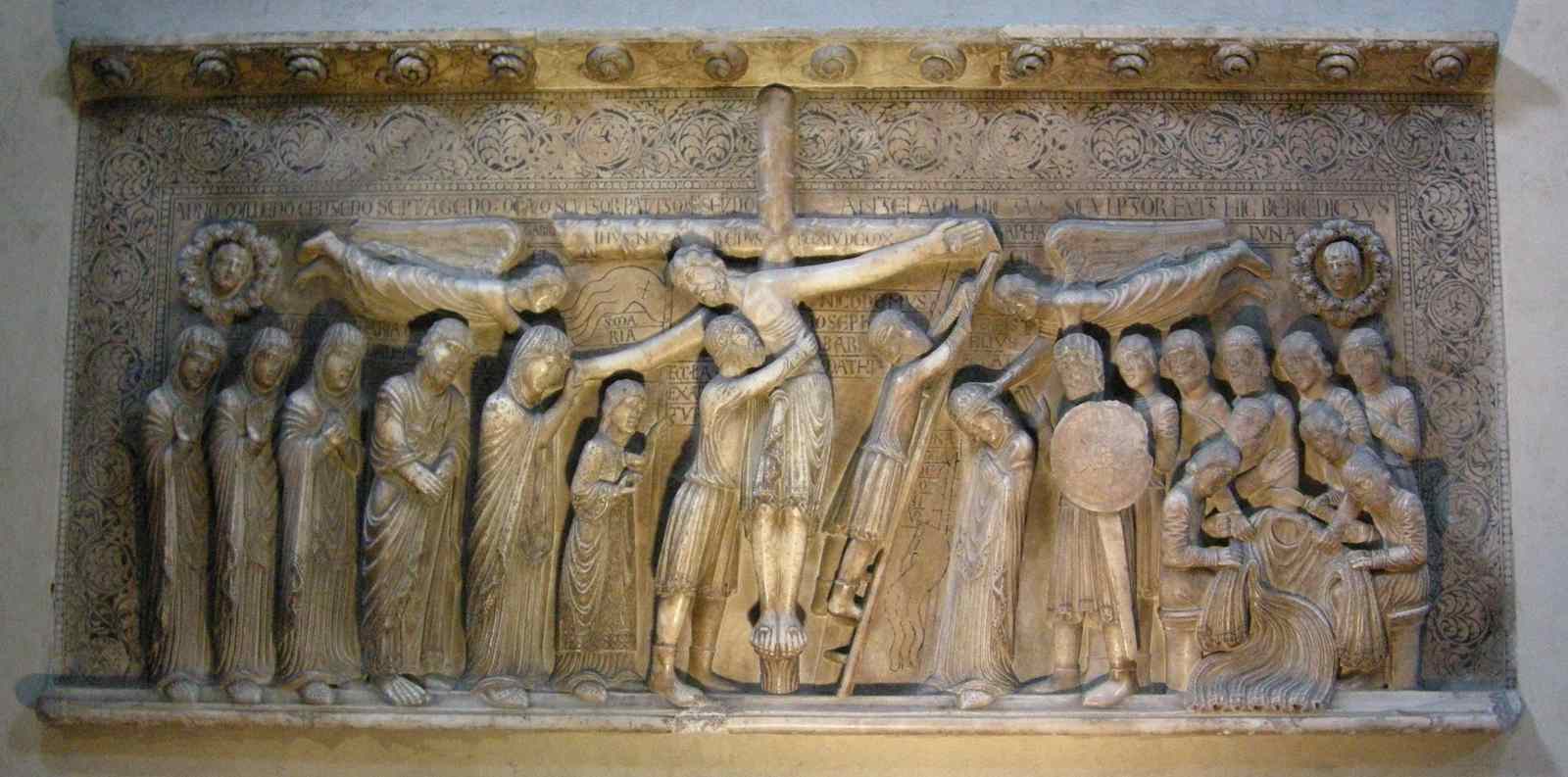 La Deposizione dalla croce, opera di Benedetto Antelami in origine, faceva parte dell'antico ambone romanico, demolito nel XVI secolo. Questo bassorilievo raffigura, al centro, Gesù che viene calato dalla croce e, ai lati, personaggi simbolici, come le tre Marie (simbolo della Resurrezione) e la personificazione dell'Ecclesia e della Sinagoga.