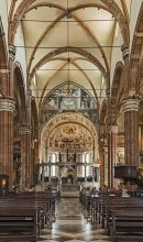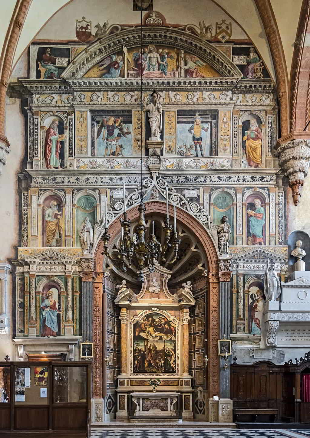 La navata centrale è conclusa dalla cappella maggiore, caratterizzata da un elegante tornacoro semicircolare in marmi policromi, realizzato da Michele Sanmicheli (1534) e dagli affreschi a soggetto mariano, opera di Francesco Torbido (su cartoni di Giulio Romano). Le cappelle laterali sono arricchite da numerose opere scultoree e pittoriche, soprattutto rinascimentali.