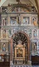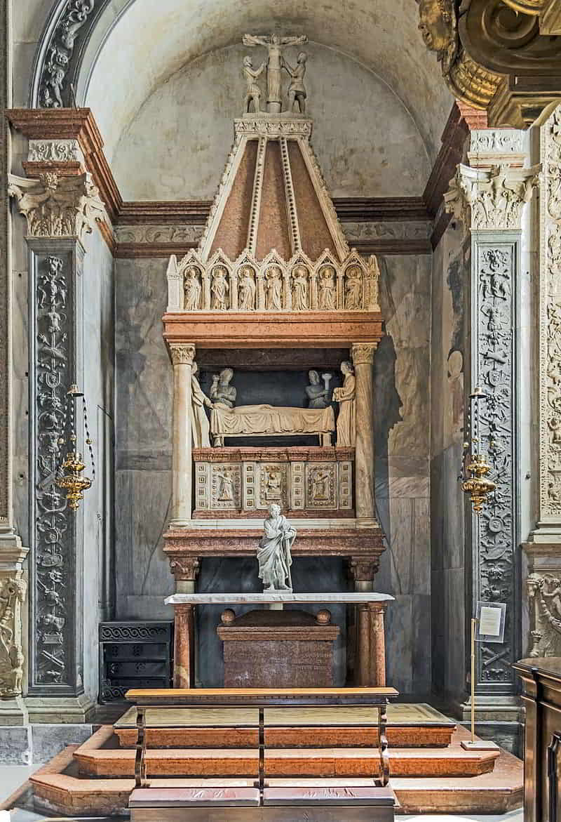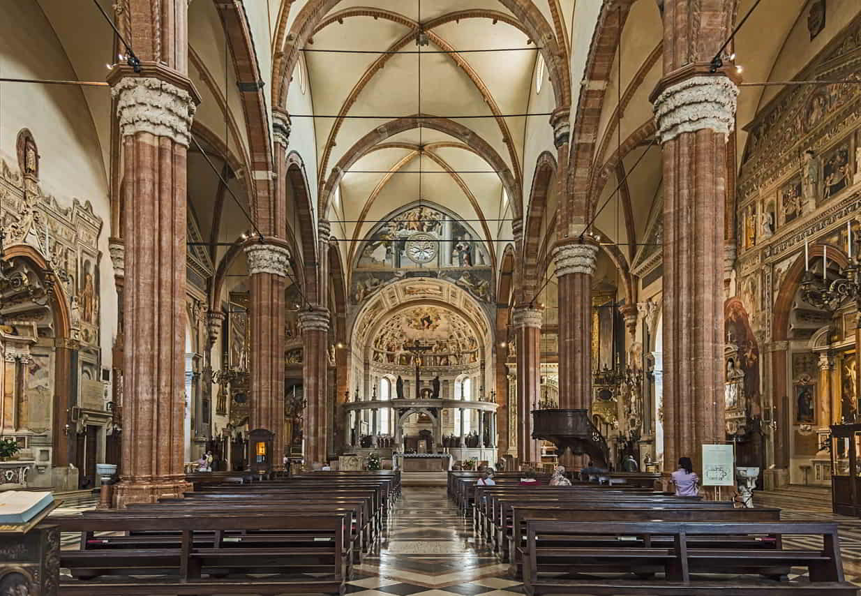 Degno di nota è anche l´opera principale di Liberale di Verona l´”Adorazione dei Magi” nella seconda cappella a destra. La Cappella Mazzanti ospita il sarcofago di Sant´ Agata. Fu realizzato nello stile degli Scaligeri nel XIV secolo e raffigura la Santa che protegge poveri, pastori, orafi ed i tessitori dalle malattie al seno, il gregge dalle epidemie e dai terremoti. Sul lato sinistro dell´abside, attraversando una porta poco appariscente, raggiungerete la Cappella Battesimale di San Giovanni in una piccola chiesa romana. Qui è interessante la fonte battesimale ottagonale che fu scolpita da un unico blocco di marmo. Un po´ più avanti si trova la piccola cappella Sant´ Elena, il cui pavimento contiene dei mosaici romani.