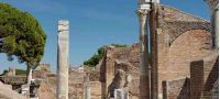 L'ingresso non è in linea col corridoio centrale ma spostato verso destra, in modo che i curiosi dall'esterno non potessero agevolmente sbirciare all'interno dei luoghi sacri, ai lati del corridoio si trovano poi i classici banconi con decorazioni a mosaico. Il mitreo prende il nome dai sette semicerchi che sono riprodotti lungo il corridoio centrale sulla pavimentazione, ognuno rappresentativo di un grado iniziatico (e difatti accanto ad ognuno, su uno dei banconi laterali, troviamo sempre rappresentata la divinità che presiede a quello specifico grado iniziatico). Le prime figure che incontriamo sono però Cautes e Cautopates, posti ai lati dell'inizio del corridoio, come mosaici sui banconi laterali.