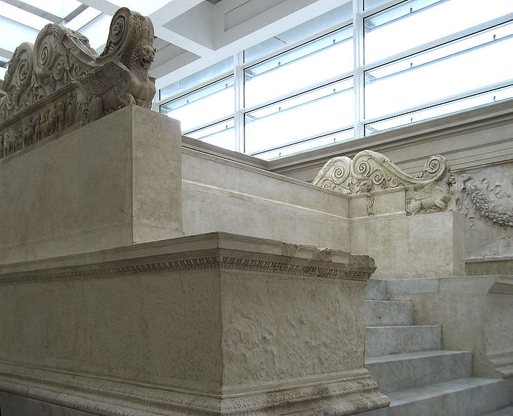 Il Museo dell'Ara Pacis contiene l'Ara Pacis di Augusto, inaugurata il 30 gennaio del 9 a.C. Gli spazi del museo progettato dallo studio dell'architetto statunitense Richard Meier, sono modulati sul contrasto luce e penombra. Particolarmente legati a questo effetto, risultano i primi due corpi di fabbrica: dopo una zona in penombra, la Galleria di accesso, si passa al padiglione centrale che ospita l'Ara Pacis, nella piena luce naturale che filtra attraverso 500 mq di cristalli; questi, pur non interrompendo visivamente la continuità con l'esterno, favoriscono il silenzio necessario per il pieno godimento del monumento.