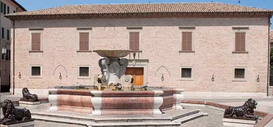 Ma è sicuramente al piano superiore che si svela uno dei tesori più belli della città di Senigallia. Attraverso una scala si accede al piano nobile dove si ammirano i soffitti interamente decorati a stucco dall'urbinate Federico Brandani (1525 circa - 1575). Il Brandani, incaricato dell'opera da Giuseppe Baviera, spese molti anni della sua vita nella sua realizzazione ed alla fine consegnò alla storia un gioiello d'arte. Nell'opera si alternano le rappresentazioni di cruente battaglie, racconti biblici, gesta eroiche e fatti storici senza che venga mai meno l'armonia del tutto.