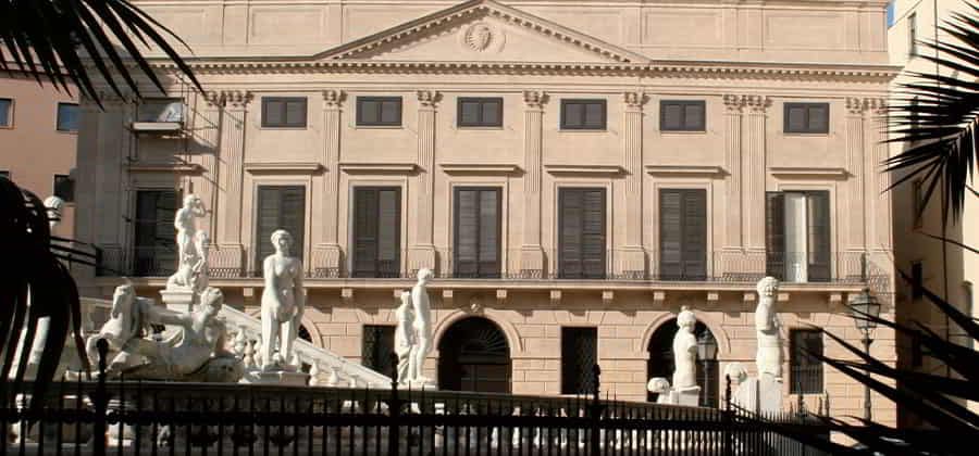 Si tratta di un edificio neoclassico, il cui prospetto con ogni probabilità fu progettato dal duca Domenico Lo Faso di Serradifalco, importante intellettuale della prima metà dell'Ottocento e dilettante di architettura. Esso rappresenta una cornice di delimitazione del perimetro della piazza con, alle spalle, il principale corso Vittorio Emanuele.